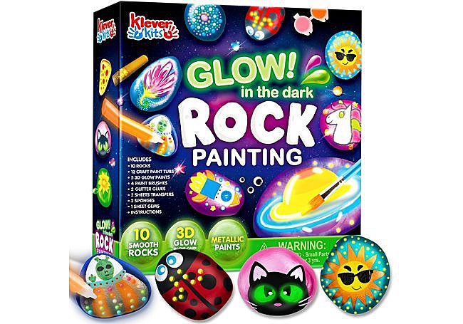 Con una selección variada de pinturas estándar, metálicas y que brillan en la oscuridad, este kit de manualidades JOYIN incluye rocas, pinceles, gemas y pegatinas. La combinación de materiales permite decorar piedras con creatividad y color, favoreciendo la expresión artística y el desarrollo de habilidades manuales en un formato seguro y fácil de usar para niños.