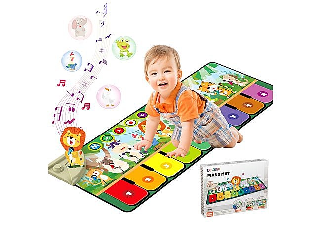 Gracias a su formato interactivo, la alfombra musical Rodzon incorpora teclas de piano, sonidos de diez animales y diecinueve canciones. El volumen ajustable y la superficie antideslizante aportan seguridad y comodidad. Su diseño plegable facilita el transporte, permitiendo explorar melodías y ritmos con una experiencia sensorial completa en cada uso. (53 palabras)
