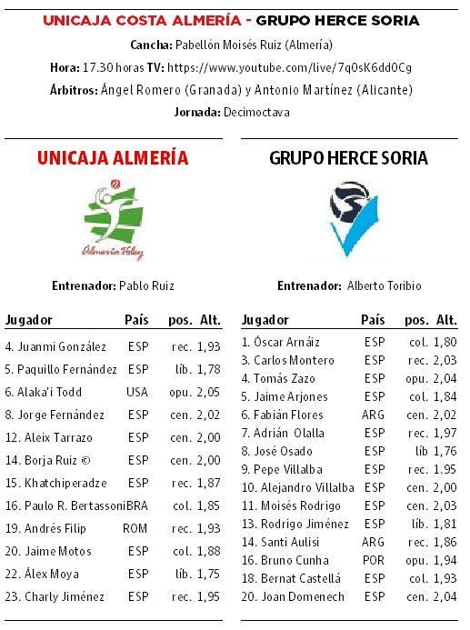 Al mismo llega un Unicaja Costa de Almería 'tocado' que deberá tirar de nuevo de Aleix Tarrazo para la función de opuesto, una posición todavía no cubierta desde que se marchó Alak'i Todd.