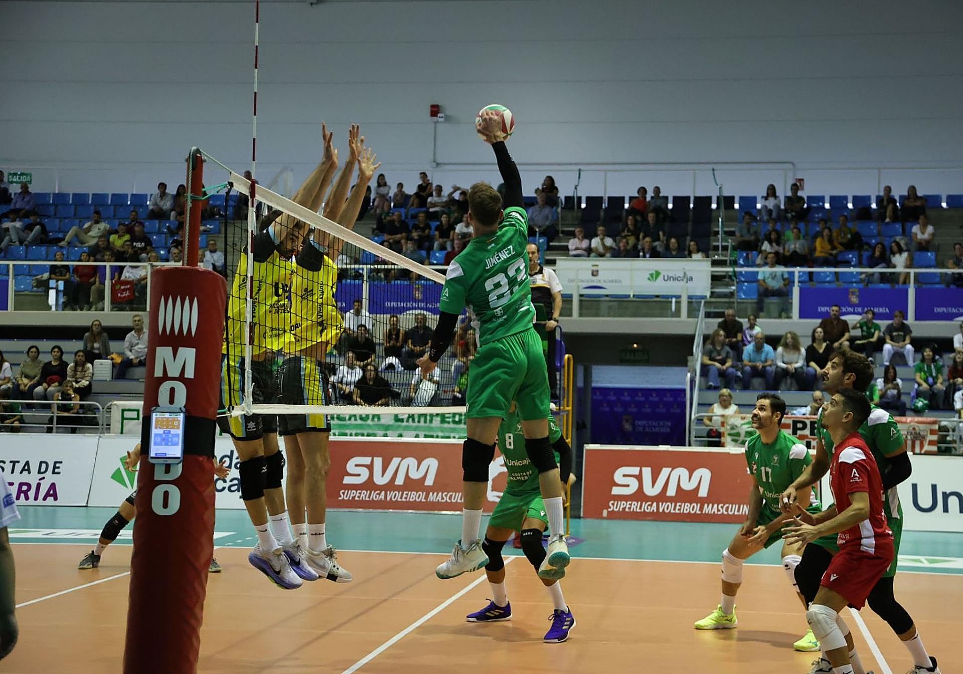 Como con Melilla, tuvo el partido en la mano porque manejó ventajas de seis y cinco puntos en los dos primeros sets que supo manejarlos el cuadro valenciano. Sin nervios y con potencial para mostrarse superior y eso que el equipo almeriense había tenido tramos del juego un tanto brillantes, sobre todo por el trabajo defensivo, pero Léleman apareció en los momentos decisivos para sentar las bases de que para que los blanquiverdes ganaran el partido debían saber manejarse con el riesgo y eso es pedir demasiado.