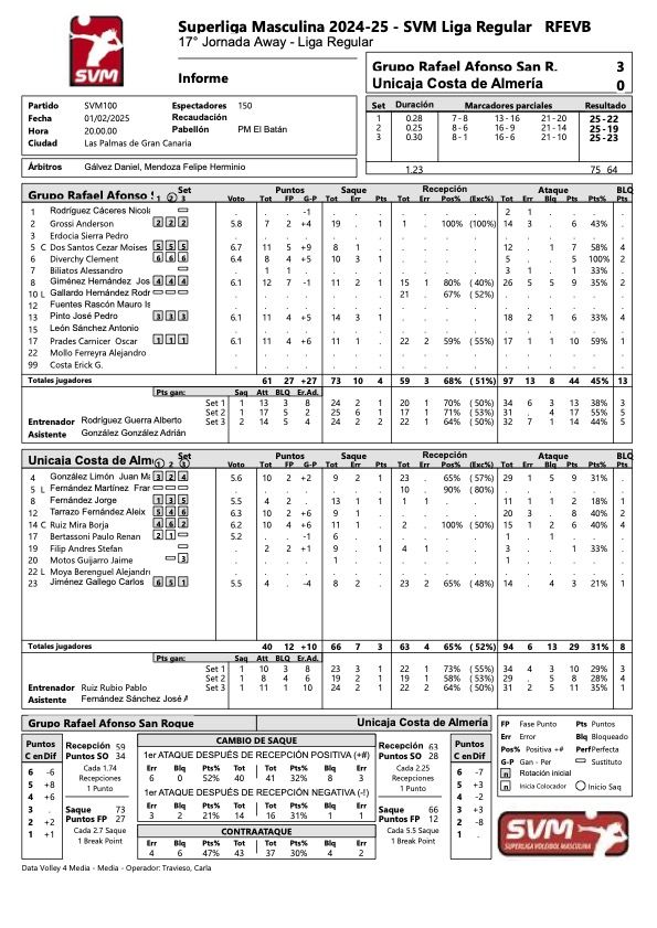 Diverchy se siguió luciendo en finta ante un conjunto ahorrador que estuvo fuera del todo y con una desventaja creciente a medida que se acercaba el final de un decepcionante encuentro (16-5). Ante una exhibición de Grupo Rafael Afonso San Roque, minutos para Andrés Filip, que anotó el 21-12 y que cuando se fue al saque provocó la 'revolución' y lo que nadie esperaba, un 23-22 con ace incluido desde un 23-13 y, además, contraataque no aprovechado con el que se podría haber empatado el set, algo increíble visto lo visto. No era el día y hasta ese tren inesperado se escapó para consumarse la pesadilla.