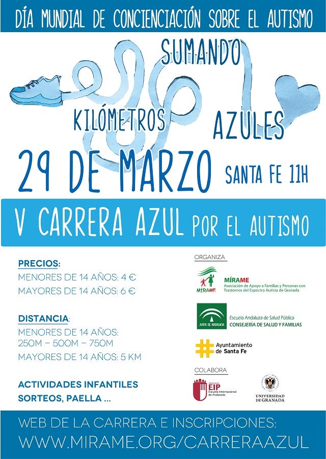 La localidad de Santa Fe seguirá el próximo 29 de marzo con su iniciativa para promover el deporte y la inclusión de la mano con la celebración de la V Carrera Azul por el Autismo. La salida tendrá lugar a las 11 horas desde el polideportivo municipal.