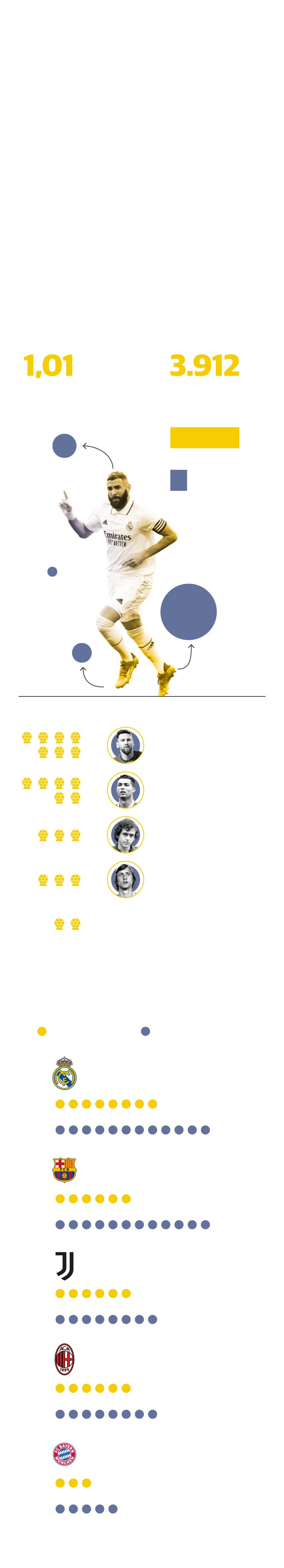 El trono del atacante rosarino pasa ahora a manos de Benzema, profeta en su tierra que sigue los pasos de otros franceses como el mencionado Kopa (laureado con el Balón de Oro en 1958 y componente de aquel Real Madrid que alzó cinco Copas de Europa de forma consecutiva), Michel Platini (triple ganador en 1983, 1984 y 1985, cuando era el jugador bandera de la Juventus y de la Francia dueña de la Eurocopa de la que fue anfitriona), Jean-Pierre Papin (vencedor en 1991 como estrella de aquel Olympique de Marsella que se proclamó subcampeón de Europa) y Zinedine Zidane (coronado en 1998 tras ganar el Mundial de ese año con la selección francesa y entonces figura de la Juventus). El jugador cuyas habilidades para la caza asemejó José Mourinho a las de un gato es el nuevo 'minino de oro' del fútbol.