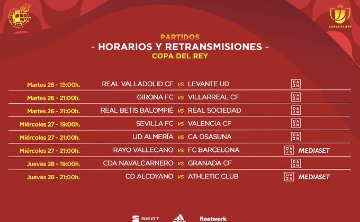 El Rayo será rival del Barça en Vallecas y el Alcoyano del Athletic en El Collao, con otros dos choques entre 'primeras': Betis-Real Sociedad y Valladolid-Levante
