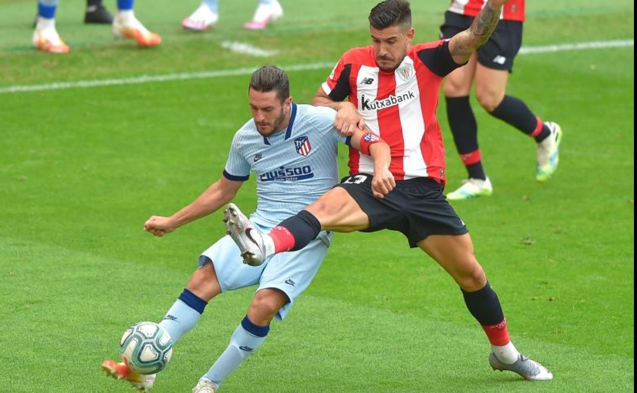 Aunque superado en los primeros minutos, el Athletic fue empezando a ganar las disputas y a merodear las inmediaciones del área de Oblak. Así llegaron un remate lejano y desviado de