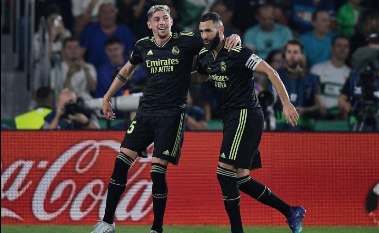 La fórmula permitió cohabitar sobre el pasto a los cuatro fantásticos del líder: Valverde, Rodrygo, Vinicius y Benzema, que comenzaron el pleito a toda mecha. Una gran asociación entre Modric, Vinicius y Benzema acabó con el '9' estampando el balón en la red, aunque el VAR invalidó la acción por un milimétrico fuera de juego de Vinicius. Poco le importó al pletórico líder, que puso tierra de por medio enseguida. Una aceleración de Vinicius causó un estropicio en la zaga del Elche. Clerc salvó bajo palos el remate posterior de Benzema, pero los visitantes maduraron la acción hasta que Valverde cebó el cañón zurdo al borde de la media luna para sellar la octava diana del Real Madrid desde fuera del área en la presente campaña.
