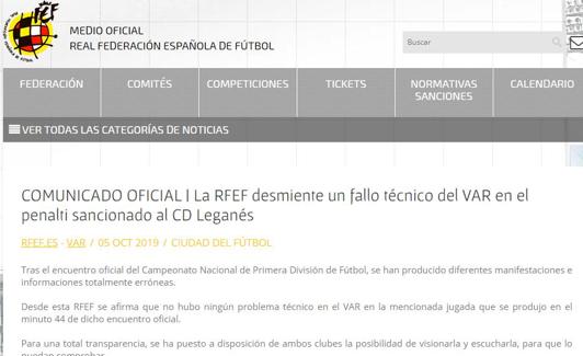 Por su parte la Federación salió al paso para negar «diferentes manifestaciones e informaciones totalmente erróneas» y afirmó «que no hubo ningún problema técnico en el VAR en la mencionada jugada que se produjo en el minuto 44 de dicho encuentro oficial. Para una total transparencia, se ha puesto a disposición de ambos clubes la posibilidad de visionarla y escucharla, para que lo puedan comprobar».