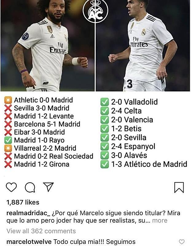 Dos victorias, dos empates y seis derrotas, ese es el récord en Liga del Real Madrid en los últimos diez partidos que Marcelo ha sido ... titular en la competición. Si cogemos el computo de todos los partidos en los que ha intervenido en Liga, que son 13, el porcentaje de derrotas roza la mitad de encuentros, un 46.1% concretamente. La situación del lateral izquierdo desde hace varios años prácticamente indiscutible parece llegar a un punto insostenible. Si Santiago Solari se arriesga a ponerle a jugar, el equipo blanco tiene casi la mitad de probabilidades de perder puntos.
