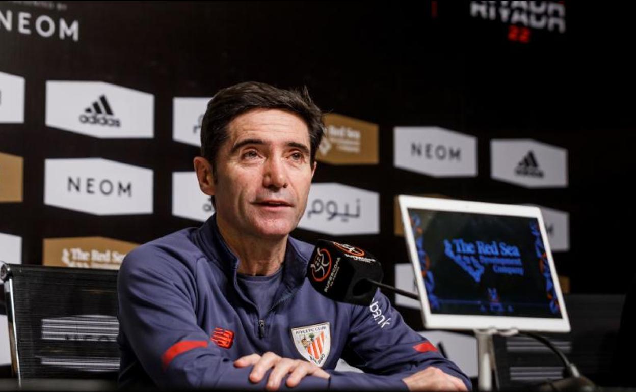 «No creo que se gane un campeonato al Real Madrid y al Barça en tres días por efervescencia o porque llegue un entrenador. Se gana porque se cree en una idea, coincide que los futbolistas demuestran su máxima capacidad en dos partidos, tienes más acierto que el rival y minimizas sus virtudes. Ese es el camino. Creo que somos mejor equipo ahora que el pasado año a esta altura», rememoró el preparador del Athletic en la previa de la segunda semifinal de la Supercopa, la que mide a su equipo, vigente subcampeón de Copa, al actual campeón de Liga, el Atlético.