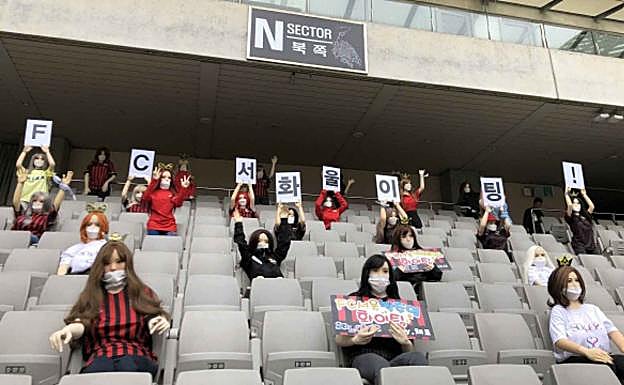 La K-League, el campeonato surcoreano de primera división, se reanudó el 8 de mayo sin público en los estadios, por lo que la mayoría de clubes han decorado sus gradas con pancartas, banderas o la imagen en cartón de sus aficionados.