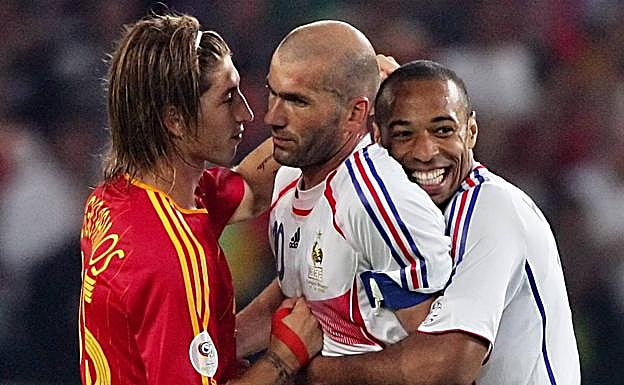 El combinado galo había pasado segunda y con apuros, con dos empates en las dos primeras citas (0-0 con Suiza y 1-1 con Corea del Sur) y un triunfo en la última (0-2) a Togo, pero en aquella eliminatoria posterior devoró a España, a la que remontó el gol de Villa con tantos de Franck Ribery, Patrick Vieira y Zinedine Zidane. España quedó eliminada; Francia llegó a ser subcampeón.