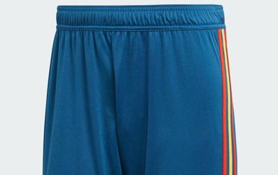 El diseño rinde homenaje a una de sus camisetas más famosas, utilizada en la Copa del Mundo de Estados Unidos en el año 1994. El pantalón es azul petróleo con líneas rojas y amarillas en los lados formando los colores de la bandera de España, mientras que las medias serán negras.