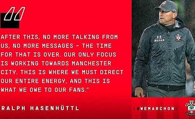 «La 'Saints Foundation' trabaja cada año con 12.000 jóvenes y adultos de todas las edades, utilizando el poder y la pasión del deporte para transformar sus vidas», añadía el escrito colgado por la entidad en su web, antes de insistir en el trabajo que desde este fin de semana está llevando a las órdenes de Ralph Hasenhuttl el Southampton, que tiene un doble compromiso ante el Manchester City en el Ethiad tanto en la Carabao Cup -martes- como en la Premier League el próximo sábado. «Los jugadores y el staff están poniendo toda su energía y atención hacia los dos partidos en Manchester esta semana», terminaba el comunicado.