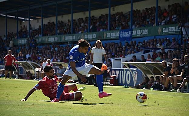 La Minera seguía a lo suyo, cinco hombres presionando la salida de balón del Linares y otros cinco defendiendo junto al área, con un hueco en el centro del campo. No dejaban salir a los azulillos pero, cuando lo hicieron, a los 19 minutos, recuperó Aranda, João Paulo abrió para la derecha, se metió de nuevo al medio y esta vez la puso con la izquierda y con rosca para la cabeza de Jack Harper, que envió la pelota imposible para Lázaro.