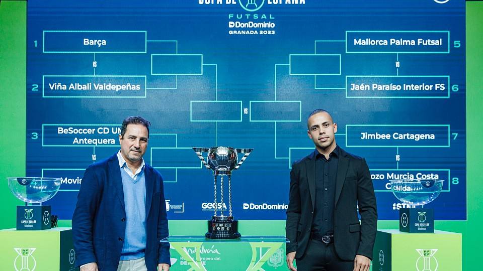 La Copa de España de fútbol sala que acogerá el Palacio de los Deportes de Granada del 9 al 12 de febrero definió este miércoles ... el cuadro del torneo. La Real Federación Española de Fútbol (RFEF) celebró en el Salón Luis Aragonés un sorteo que deparó por los cuartos de final enfrentamientos entre Palma Futsal y Jaén Paraíso Interior el viernes 10 de febrero. El vencedor jugará su semifinal el sábado ante el ganador del derbi muricano entre Jimbee Cartagena-ElPozo Murcia Costa Cálida.