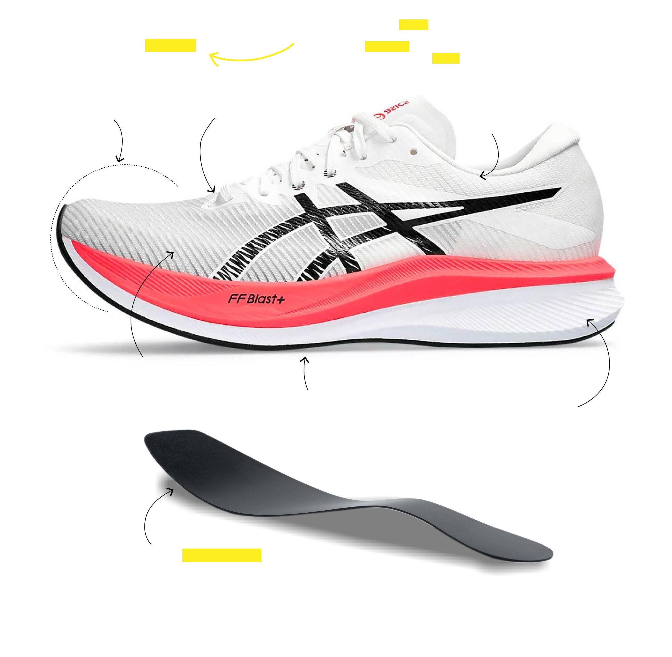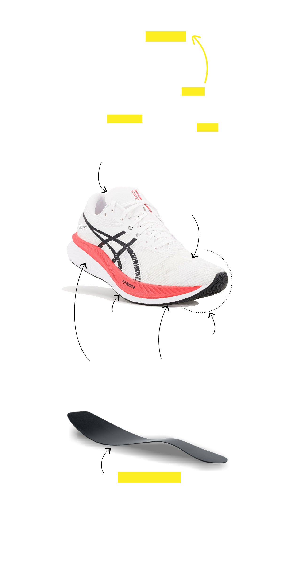 La clave para que estas resistan distancias tan largas como las de 20 y 35 kilómetros reside en la placa de carbono con las que van equipadas. Para evitar los efectos del desgaste, suele estrenar modelo en las pruebas de 35. «Cuanto más se utilizan, más se deforman y pierden funcionalidad. Y a más kilómetros, más se acusa», expresa. La zapatilla cuenta con una amortiguación máxima con una mediasualida maximalista hecha de espuma que permite conservar más energía en carrera.