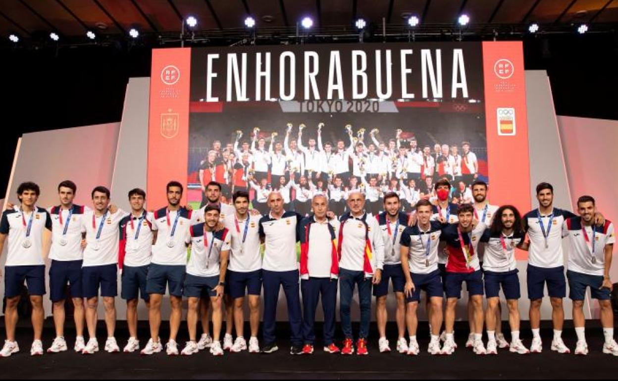 «En no más de tres años este colectivo será el 90% de la selección absoluta y serán figuras mundiales. El pasado es muy bueno, pero el presente y el futuro serán mucho mejor», aventuró el presidente del Comité Olímpico Español (COE), Alejandro Blanco, que no suele fallar en sus pronósticos y fue convencido por su «hermano Luis Rubiales» para asistir a la Ciudad del Fútbol, también recién aterrizado desde Tokio, a la recepción a equipo tan prometedor. «Para muchos estos es cerrar el círculo de las categorías inferiores y ahora tenemos que pelear por la absoluta», reclamó Jesús Vallejo, quien pidió a sus compañeros «no perder nunca la relación y que el grupo de WhatsApp lo mantengamos siempre, para recordar nuestras historias».