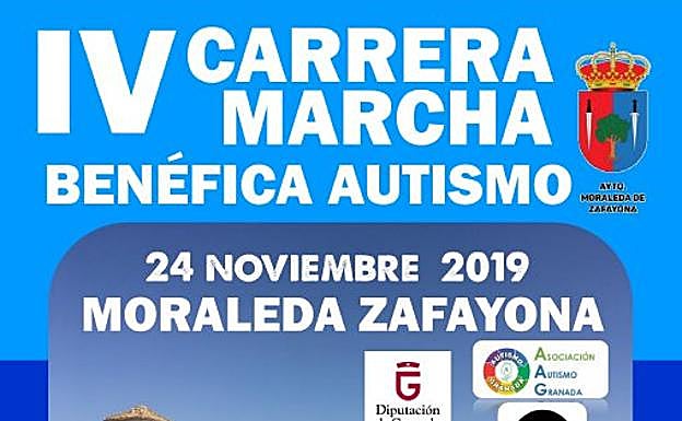 El Ayuntamiento de Moraleda de Zafayona organiza para el próximo día 24 de noviembre la IV Carrera Marcha Benéfica por el Autismo. Habrá paella posterior y bolsa del corredor con almuerzo, seguro y avituallamiento.