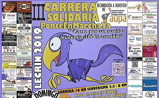 La localidad de Lecrín acogerá el próximo domingo 17 de noviembre la III carrera solidaria PonteEnMarchaYa bajo el lema 'Corro por un sueño: leucemia 100% curable'. La salida tendrá lugar a las 11 horas desde la Casa de la Cultura de Talará e incluye una carrera de 10 kilómetros y marchas senderistas de 2.5 y 6 kilómetros. También se ofrece la posibilidad del dorsal '0' para la recaudación de fondos. A su finalización se compartirá un arroz solidario y actuarán la Blanca y el Negro.