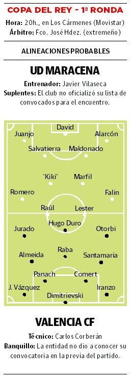 La Copa del Rey se desplaza esta noche hasta Maracena con Los Cármenes como sede (20.00 horas, Movistar). Aunque el feudo granadinista acogerá la ... eliminatoria de primera ronda que enfrentará al conjunto metropolitano y al Valencia, el azulillo sustituirá al habitual rojiblanco en una noche festiva para todo buen maracenero, que podrá contemplar por primera vez al equipo del pueblo contra todo un Primera división.