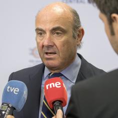 Luis de Guindos comparece ante la prensa tras la reunión del G-20.