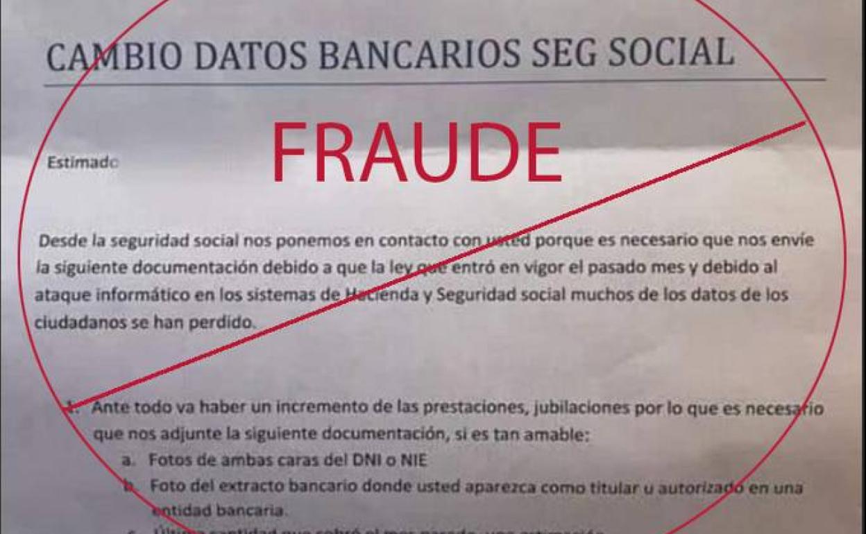 Importante aviso de la Seguridad Social. Se trata de un nuevo fraude que se realiza a través de una carta postal. En este nuevo ... episodio de intento de engaño se piden el cambio de datos bancarios por parte del ente público a través de una dirección de mail. De este modo, la Seguridad Social ha informado de este caso de fraude a través de su cuenta de Twitter de Atención a la Ciudadanía. La Seguridad Social, que ha avisado de la a trabajadores para recibir en casa su informe de cotización, advierte sobre los envíos de cartas como la que ilustran en una foto o parecidas, en las que se solicita datos privados a los afectados.