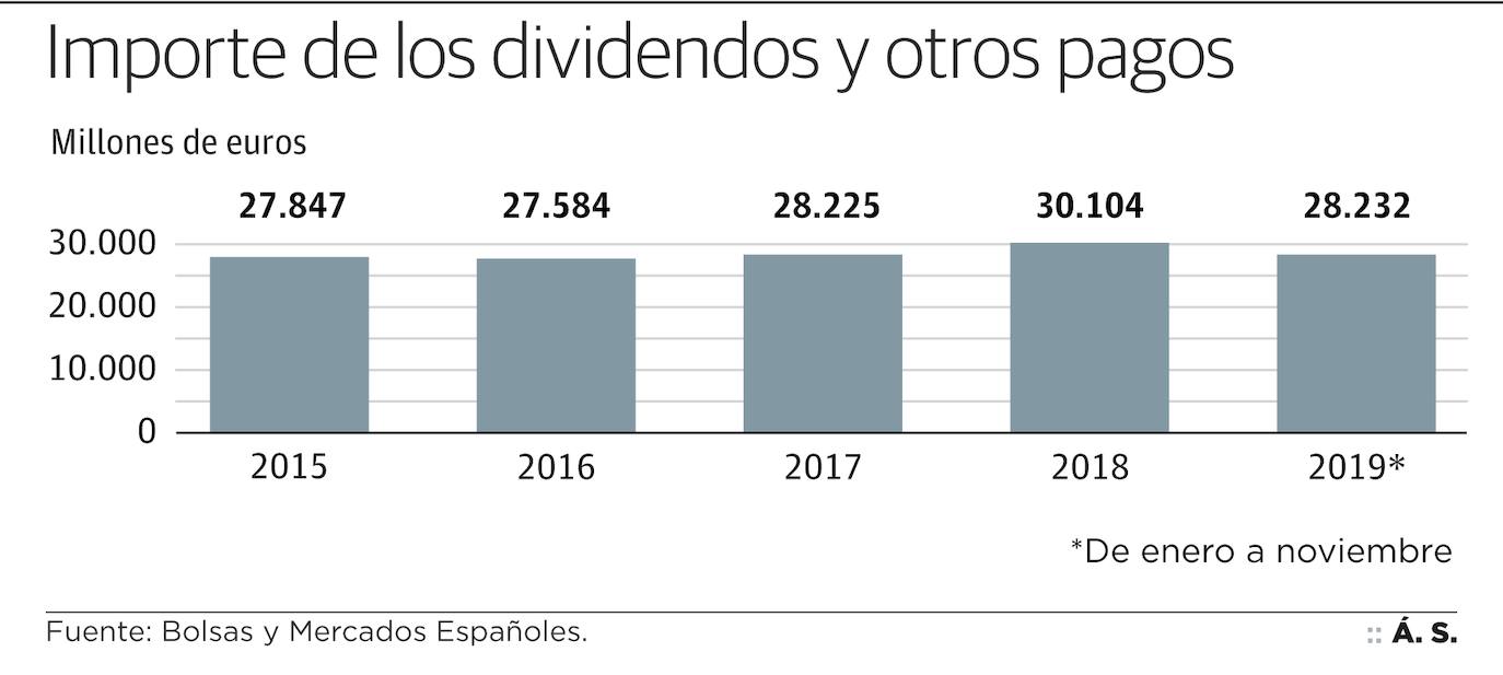 Las sociedades cotizadas han abonado más de 28.000 millones al accionista este año