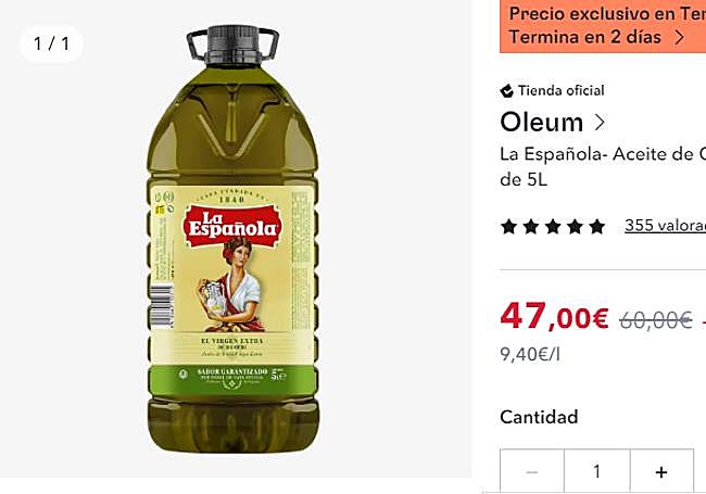 El descuento permite conseguir un precio de 9,40 euros el litro de aceite de oliva virgen extra