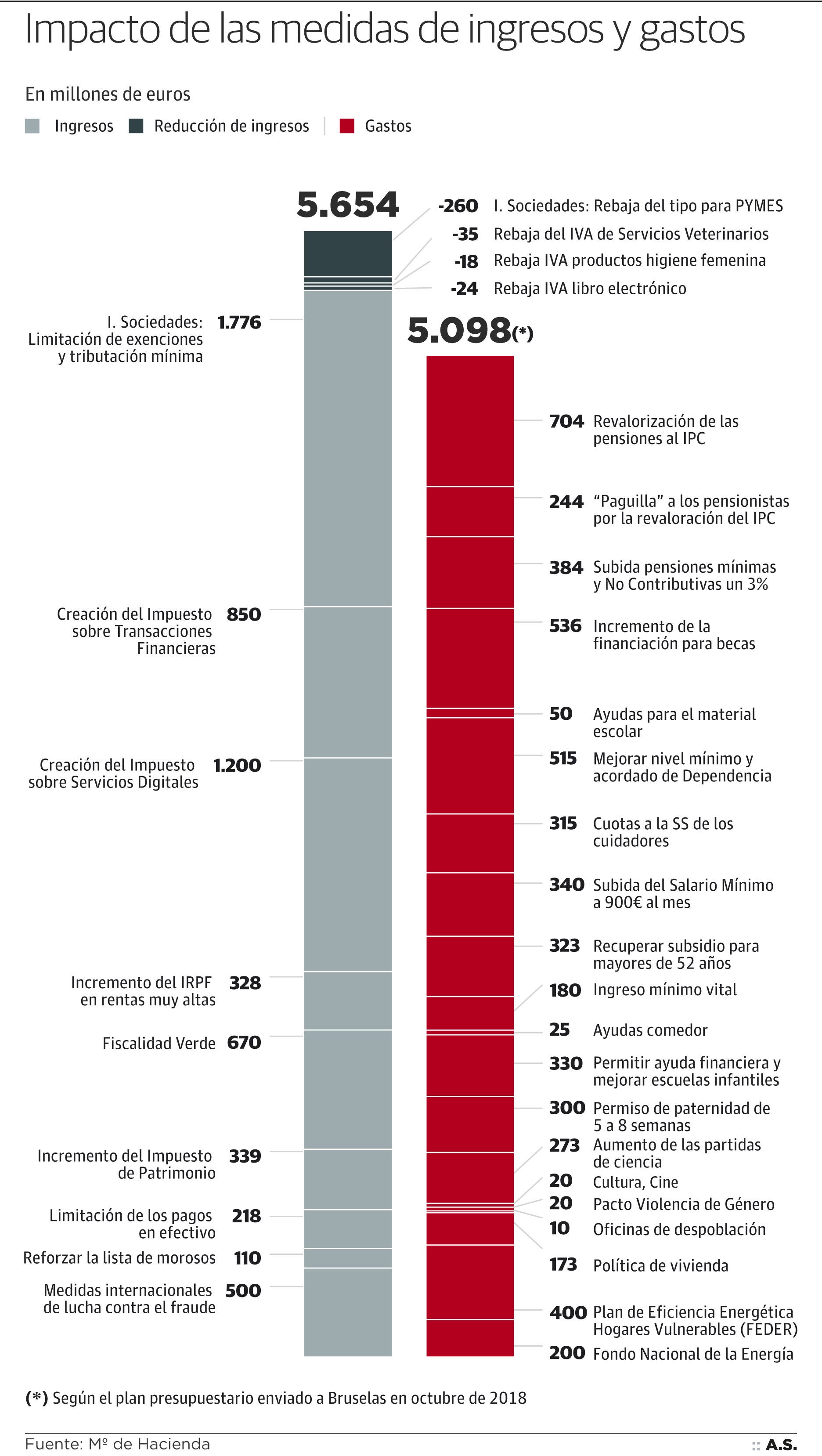 El cuadro macroeconómico sobre el que han basado sus cuentas revisa una décima a la baja el crecimiento del PIB para 2019 hasta el 2,2%. Como adelantó este jueves la ministra de Economía, Nadia Calviño, esta diferencia se debe al «fuerte ajuste fiscal» que ha habido que llevar a cabo por no poder flexibilizar el objetivo de déficit para este año por la negativa de PP y Ciudadanos en el Senado.