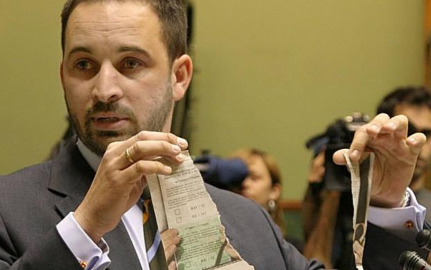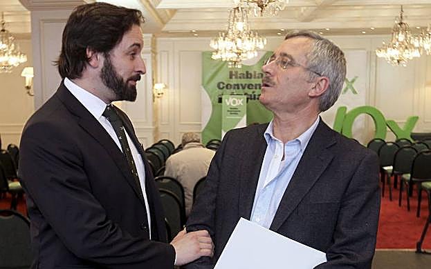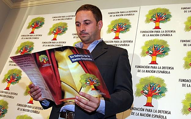 EFE En noviembre de 2013 presentó la baja del Partido Popular por diferencias irreconciliables con su cúpula. Abascal no dudó en integrarse en un nuevo partido político de extrema derecha. Se hizo con la presidencia de VOX en 2014. La «denuncia del multiculturalismo», la «defensa de la identidad nacional frente a los intereses de Bruselas» y la salvaguarda «de los pueblos europeos frente a la masiva inmigración islámica». Postulados cercanos a los que promulgan otras formaciones ultraderechistas europeas como el Frente Popular francés, un espejo dónde siempre se ha mirado. En la foto, saluda a José Antonio Ortega Lara, funcionario de prisiones secuestrado por ETA entre 1996 y 1997, y actualmente integrado en el partido.