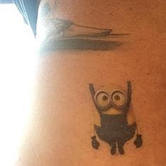 La ... más pequeña de la casa es fan de 'Los Minions', y su padre, se ha tatuado uno de los entrañables personajes en alguno de los pocos huecos que quedan libre en su anatomía.