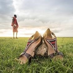 Esta colaboración tiene dos escenarios. Pikolinos diseña y corta las piezas en España y después las envía a Maasai Mara, la reserva natural nacional situada al sudoeste de Kenia, para distribuirlas entre las manyattas (asentamientos donde viven los masái). Allí, a miles de kilómetros de distancia, en la sabana, sin carreteras, aprovechando la sombra y cosiendo debajo de una acacia, las mujeres conversan en swahili rodeadas de animales salvajes. Con paciencia y sutileza bordan las pieles con insignias, colores y diseños típicos de su identidad cultural antes de devolverlas a Elche, donde se terminan de montar las sandalias.
