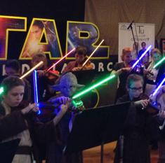 Alumnos de la escuela de primaria École de lHarmonie de Quebec, en Canadá, protagonizaron un concierto de 45 minutos de duración en el que tocaron ... diferentes temas de Star Wars: con sus violines y los arcos de los instrumentos parecían auténticas espadas láser.