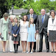 Doña Letizia escogió un vestido de Felipe Varela, de color aguamarina, a tono con la corbata de su marido, quien se inclinó por un terno gris. De su lado, la princesa Leonor llevaba un vestido celeste de falda tableada. Con muchas sonrisas y alguna chanza, los integrantes de la familia real ofrecieron una imagen poco habitual, pues no se les veía juntos desde el verano del año pasado. Han sido necesarios diez meses para que se repita la escena. A don Juan Carlos se le vio especialmente jovial. Tomó el pelo a sus nietas y conversó animadamente con doña Sofía y doña Letizia.