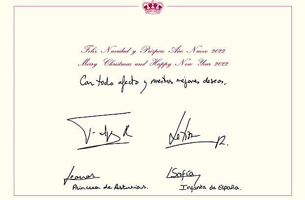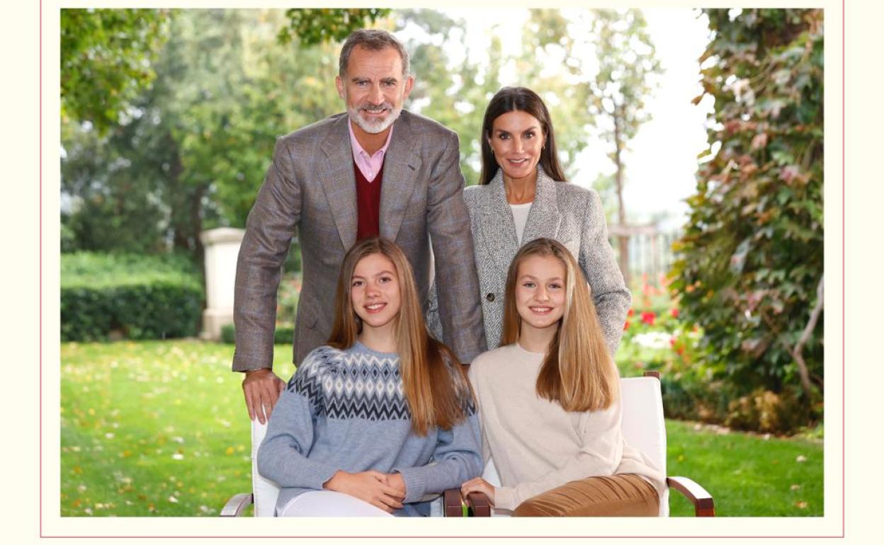 Los Reyes han publicado este jueves su tradicional felicitación navideña. En esta ocasión han recurrido a una imagen inédita de los cuatro miembros de la ... familia en el jardín del Palacio de La Zarzuela, con la que expresan sus «mejores deseos».
