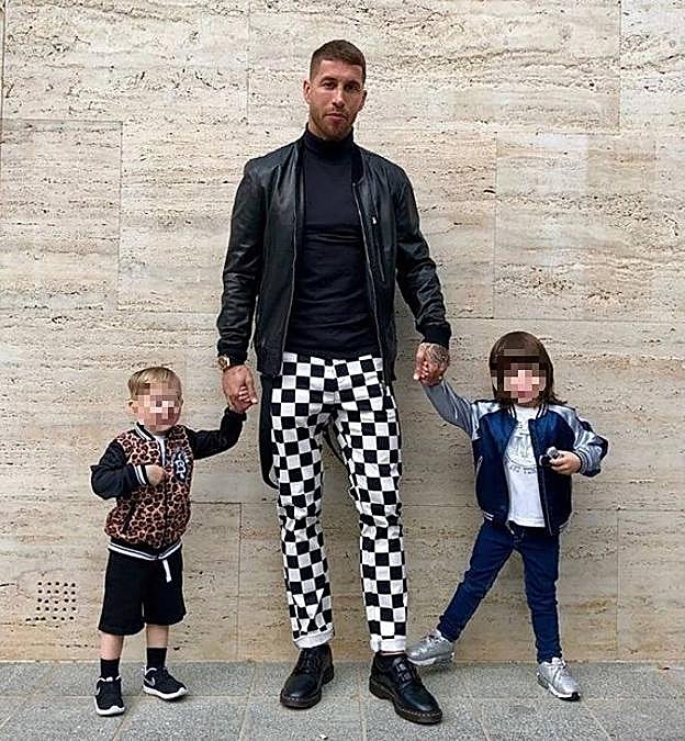 El deportista Sergio Ramos ha compartido una fotografía en al que apoarece con sus dos hijos mayores, Sergio y Marco. En ella se le ha posiso ver con unos pantalones un tanto llamativos, a cuadros negros y blancos, como si de un tablero de ajedrez se tratara.