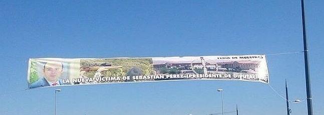 Una enorme pancarta apareció el domingo junto a la feria de muestras de Armilla. En la misma se podía leer: "La nueva víctima de Sebastián ... Pérez". Las instalaciones de Fermasa aparecen en el punto de mira, señaladas por una escopeta de caza que no se aprecia quién la sujeta, aunque el trozo de fotografía coincide con una imagen del propio Sebastián Pérez distribuida hace tiempo por redes sociales.