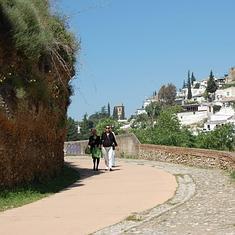 Cuando la intervención culmine, la ciudad disfrutará de un nuevo sendero en la ladera de la Alhambra, por donde se acondicionará un camino para peatones y otro para ciclistas. El camino para los peatones tendrá 1,20 metros de ancho y será de zahorra natural y alpañata, lo que le dará un aspecto natural -de tierra compactada-, mientras que el carril para ciclistas llegará a los dos metros de ancho -del mismo material-. Un pequeño bordillo separará los dos carriles para mayor seguridad de unos y otros usuarios. Los nuevos senderos arrancan en el Puente de Teatinos y llegan hasta la presa real de la Alhambra, donde se hará una pequeña área de descanso. La CHG explica que se aprovecharán caminos que se han venido usando históricamente, pero que no estaban acondicionados. También se harán tres pasarelas de madera y metal para cruzar el río.
