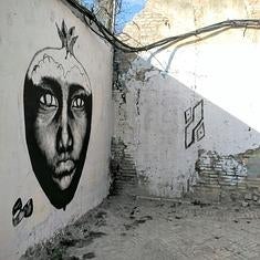 El joven se encontraba pintando un rostro humano de dos metros de alto por metro y medio de ancho y fue trasladado a dependencias policiales acusado de un delito contra el patrimonio.