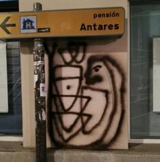 Los agentes lo localizaron con un espray de color marrón junto a una de estas pintadas de gran tamaño, realizada en un edificio de la calle Cetti Meriem, un inmueble propiedad de una entidad bancaria cuya fachada carece de protección patrimonial.