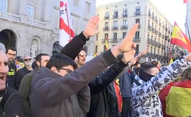 El 'Cara al sol' y saludo fascista en la manifestación de Vox en Barcelona