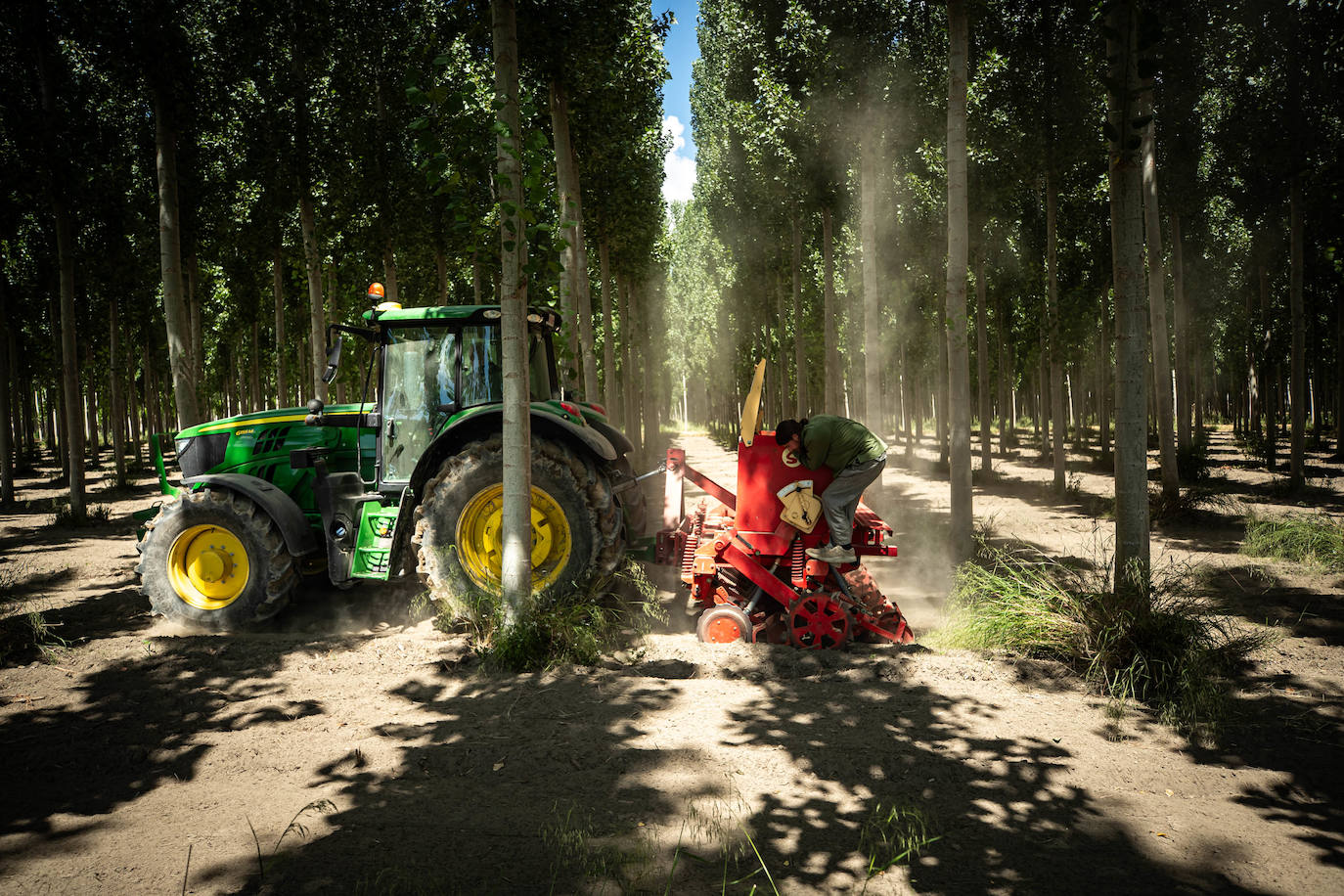 Hace poco más de una década, había 12.000 hectáreas de choperas en la provincia de Granada. El territorio era uno de los líderes de España en este cultivo, especialmente en la Vega y la comarca del Altiplano, pero la pérdida de rentabilidad ha hecho que solo queden unas 5.000. El trabajo de Samuel junto a Juan Carlos y otros selvicultores pretende revertir ese abandono y promover el cultivo de chopos.