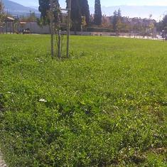 El Parque de la Virgencica, adaptado a toda prisa para que fuera inaugurado antes de las elecciones municipales, no es apto para que la gente se siente a descansar porque en lugar de césped tiene unos hierbajos que superan los treinta centímetros de alto