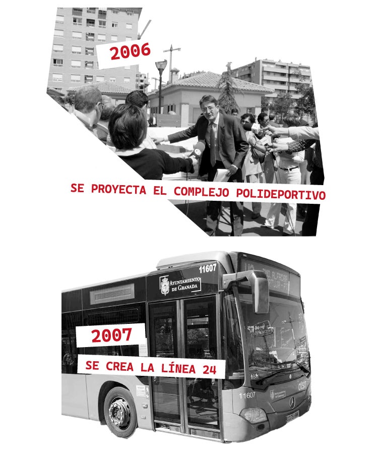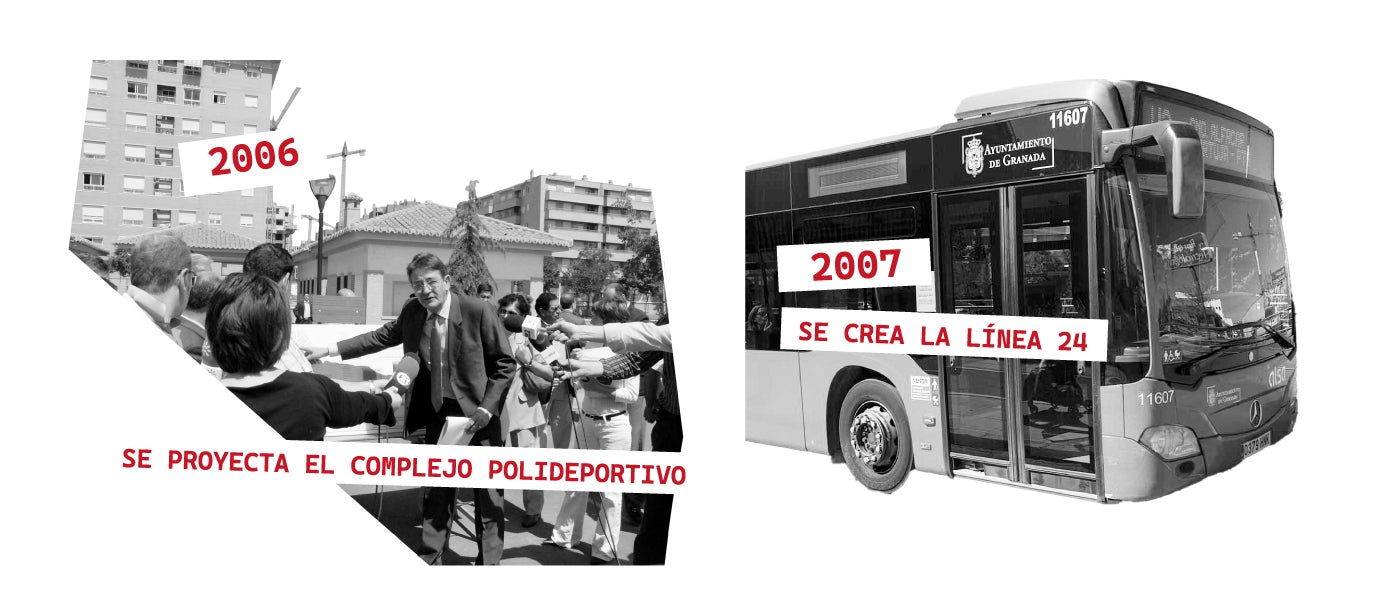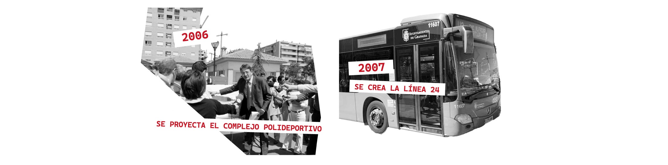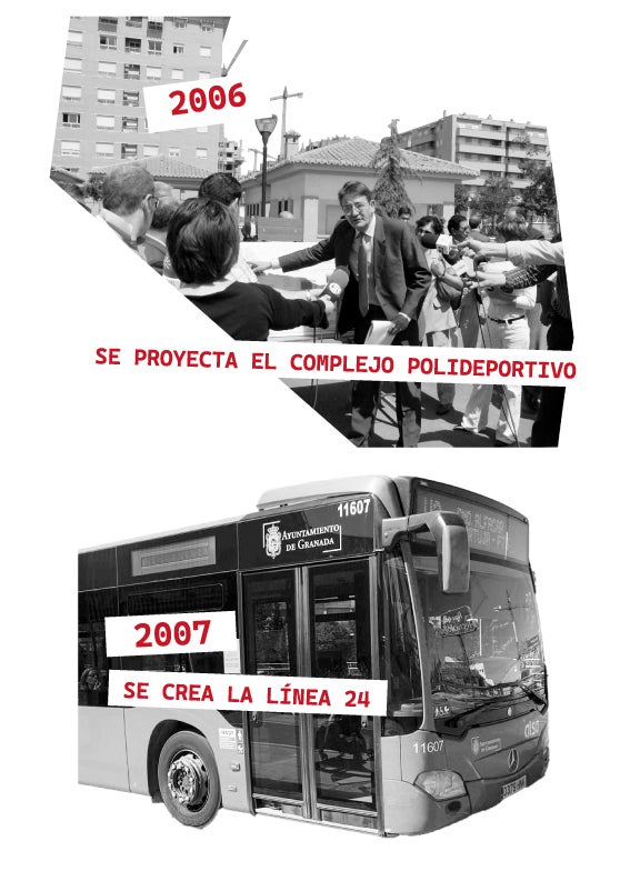 Otra de las grandes reivindicaciones de aquel momento fue el transporte público. Ahora por el barrio atraviesa la primera línea de metro de la ciudad, que ha transformado también parte de sus calles. Pero a inicios de los 2000 ningún autobús llegaba a la zona y el metro ni se intuía que llegaría a la ciudad. Fue en 2007 cuando Ayuntamiento y Rober crearon tres nuevas líneas en las que se incluyó el 24 que fue el primer número en llegar hasta el final de la avenida Federico García Lorca. Ahora es el 21. Después dejaba a los viajeros en el Triunfo. Había poca frecuencia, pero fue un paso importante para unir aquel ensanche de Granada con el centro de la ciudad.