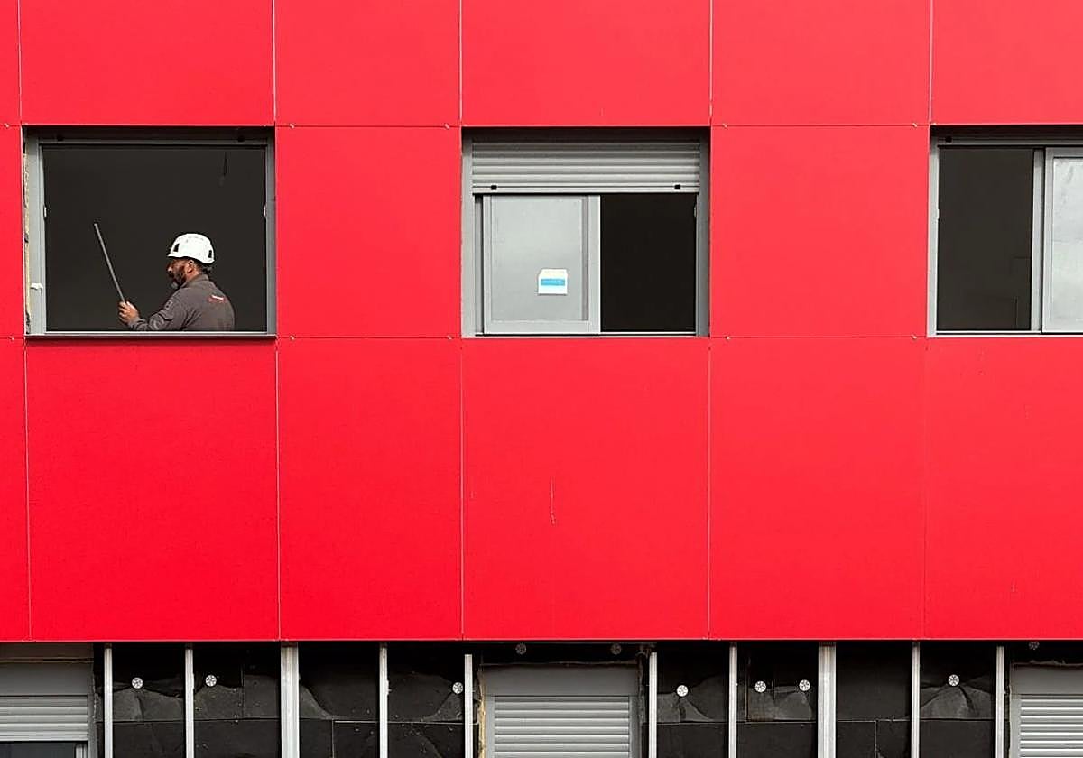 El autor analiza una imagen tomada por Pepe Marín a un operario que trabaja en un edificio de VPO en La Chana cuya obra está a punto de terminar