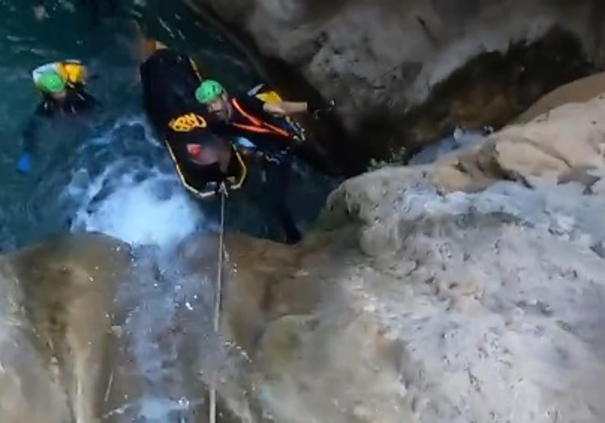 Los especialistas del Grupo de Rescate en Intervención en Montaña tuvieron que emplear una combinación de diferentes técnicas mediante el uso de cuerdas, poleas y bloqueadores para remontar la camilla con la accidentada por el cauce del río hasta conseguir llegar al sendero de entrada al barranco, lugar desde donde fue transportada a hombros, sendero arriba, hasta llegar a los vehículos y efectuar la transferencia a una ambulancia para su traslado al hospital de Motril.