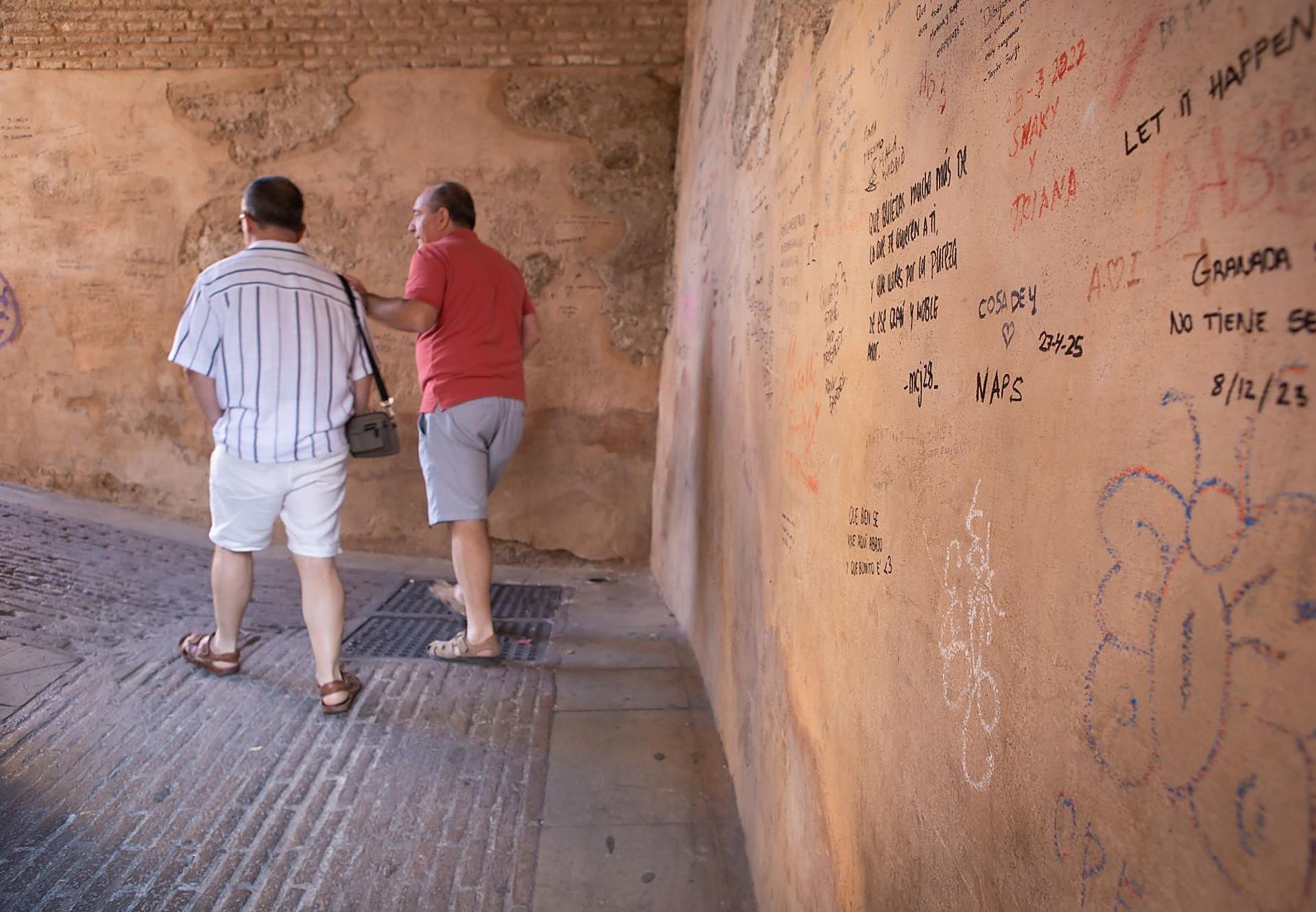 Atravesar el Arco de las Pesas, construido por los ziríes en el Albaicín en el siglo XI, debería ser una experiencia maravillosa. Por su significado, ... por su historia y porque está considerada una de las primeras puertas de recodo de la arquitectura hispano musulmana. Pero no. Es todo lo contrario. Hoy día está completamente vandalizada. No hay un centímetro cuadrado de sus milenarios muros que no tenga una de esas frasecitas que dejan los visitantes a modo de 'recuerdo' de su paso entrañable por la ciudad de la Alhambra y por un barrio, el Albaicín, que no olvidemos que goza de los máximos niveles de protección al estar declarado por la Unesco Patrimonio de la Humanidad.