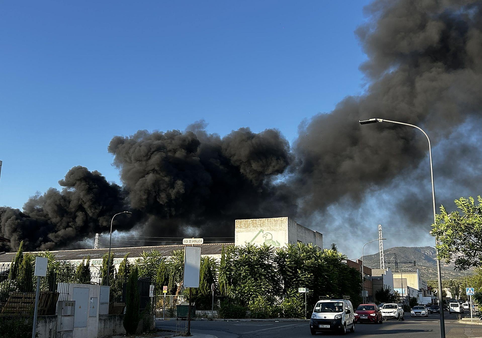 El fuego ha provocado una gran columna de humo negra que era visible desde la capital. El 112 ha movilizado a tres camiones de Bomberos, Policía Local y Guardia Civil, que se han desplazado hasta la avenida Sevilla, lugar donde se ha producido el incendio.