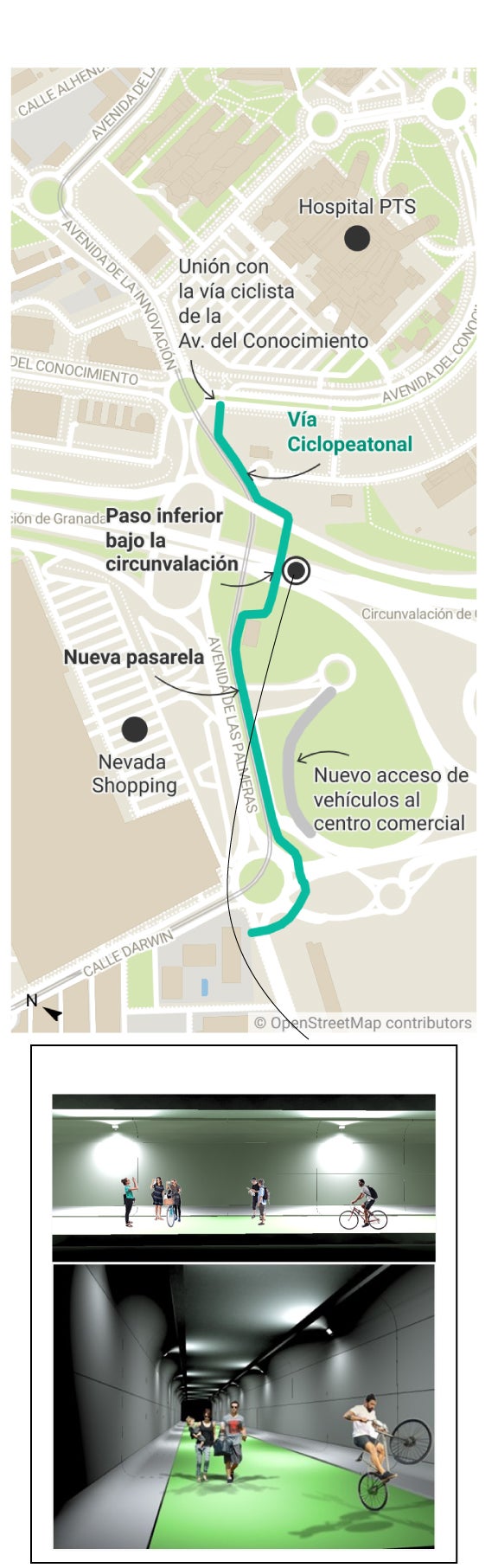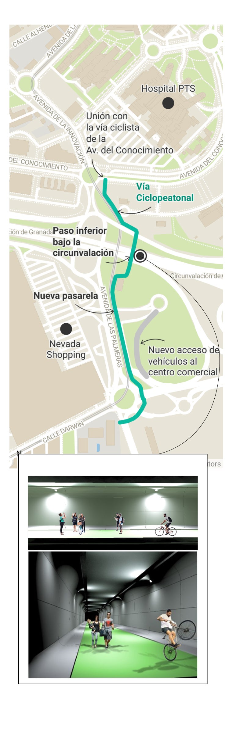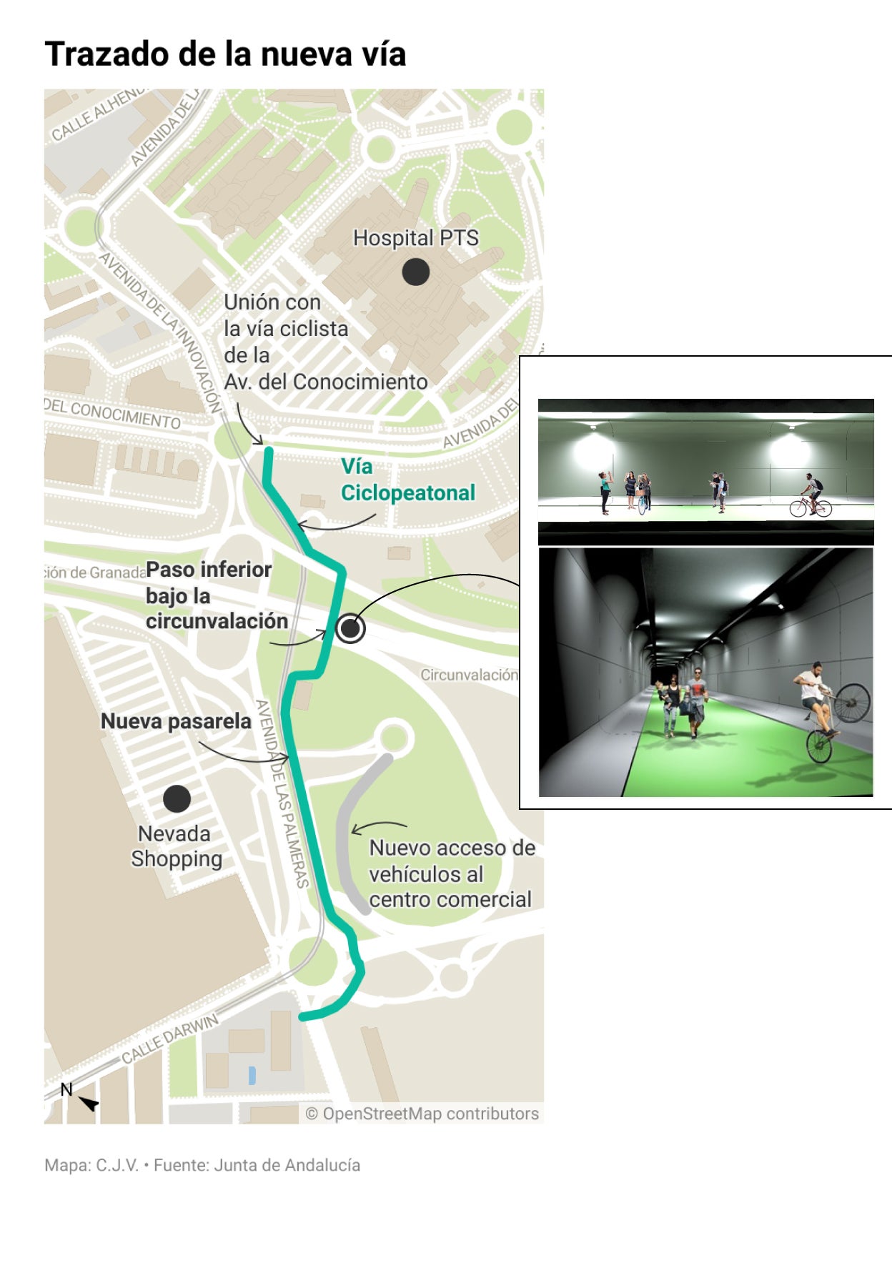El recorrido une con la vía ciclista de la avenida del Conocimiento, en Granada capital.