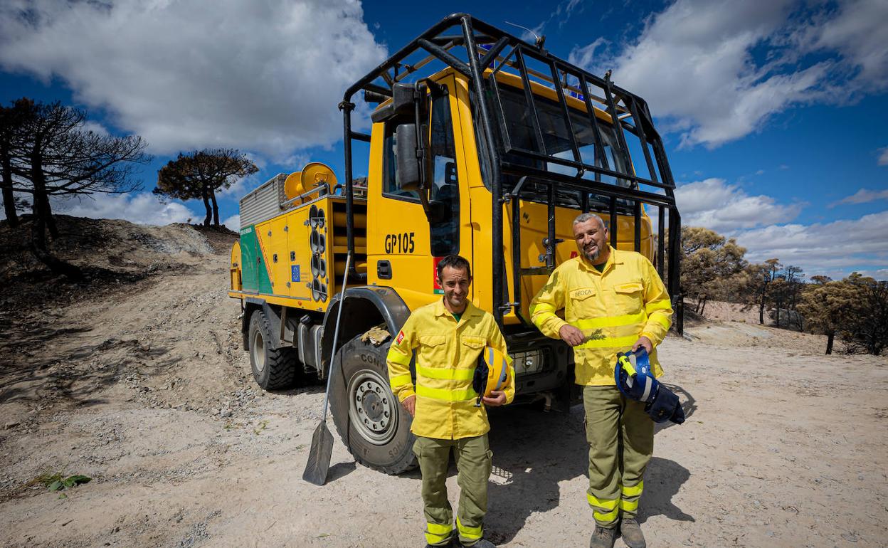 Ahora lo piensa y se ríe, pero fue la situación más «jodida» que ha tenido que hacer frente tras más de media vida de lucha contra el fuego forestal. Rodeados, con el camión apagado, había que volver al infierno. «Entonces oí un ruido: se estaba yendo el aire de algún lugar y creí que era eso lo que hacía que el vehículo no se moviera», cuenta este hombre, que se puso a mirar hasta ver un latiguillo que se había dañado. Entonces sacó su navaja del bolsillo, se agachó a por una ramita de pino, la afiló y la introdujo por donde se escapa el aire. Y...funcionó.